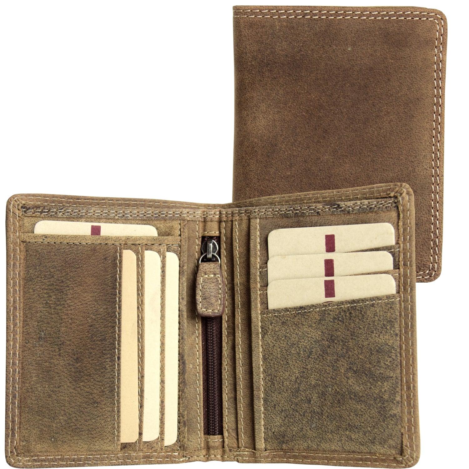 Premium Distressed Leather: Made from high-quality distressed leather, this wallet offers a unique and durable finish that ages beautifully.