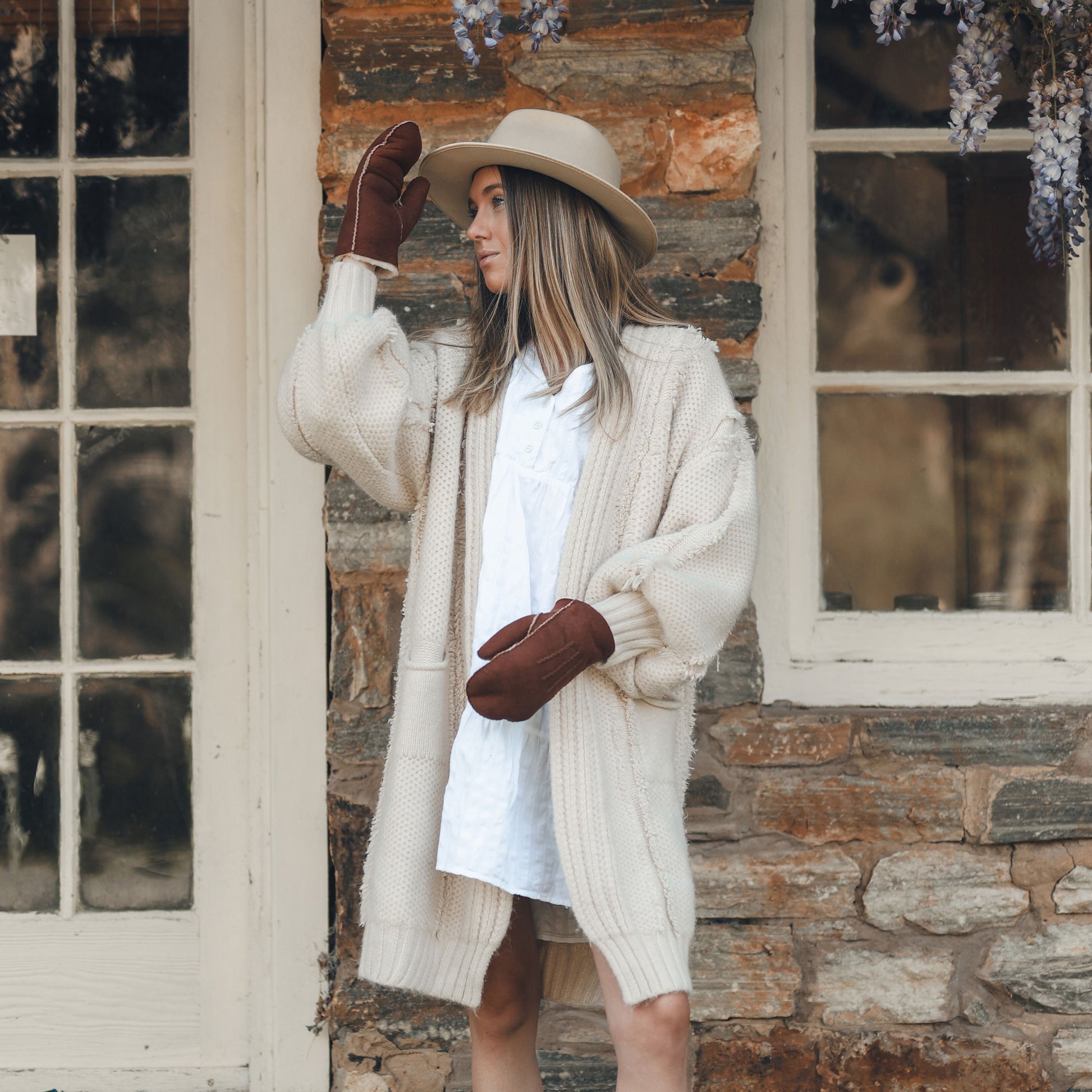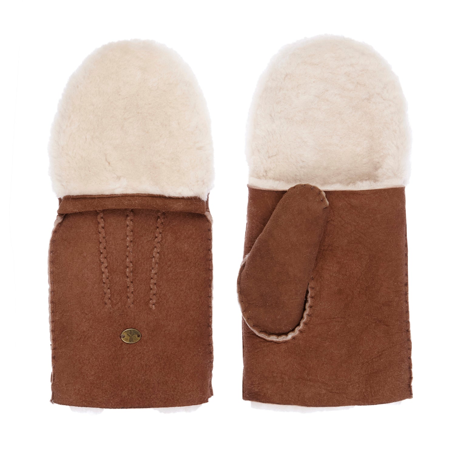 Featuring a trendy mitten design, these gloves are not only fashionable but also functional. Crafted from 100% authentic double face sheepskin, they possess the natural ability to 'wick away moisture,' keeping your hands dry and comfortable. The addition of handstitched detailing and a removable suede carry strap adds a touch of sophistication and practicality to these gloves.
