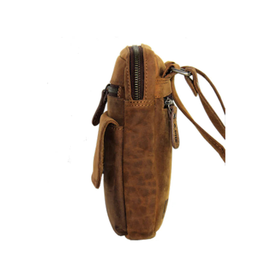 Crafted from rich, resilient bison leather, the Stage Coach Brown Bag by Adrian Klis embodies the perfect blend of tradition and modern functionality. Measuring approximately 6 inches in length, 1 1/4 inches in width, and 8 1/4 inches in height, this compact yet spacious bag is designed for those who value craftsmanship and durability.