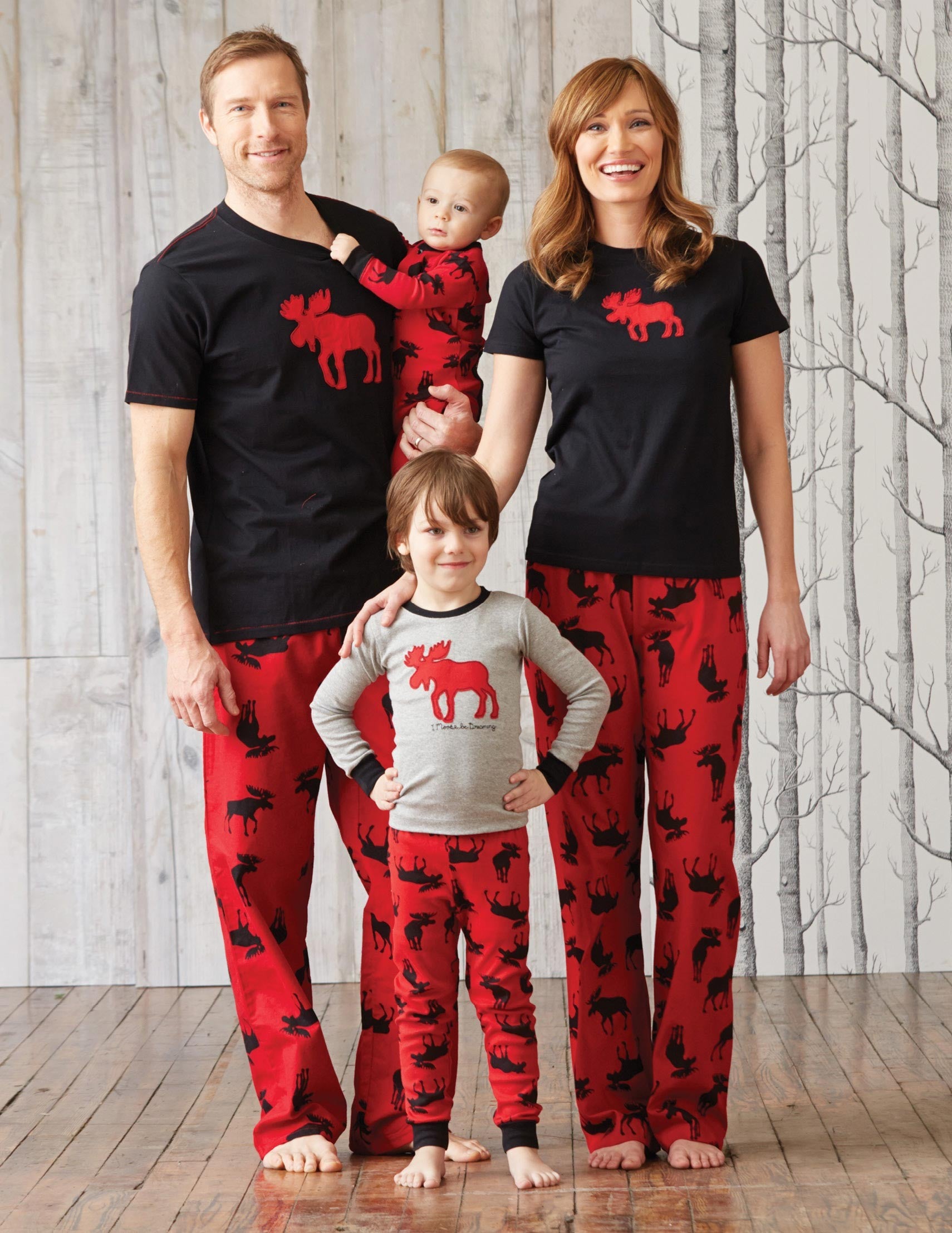 Sweet dreams and peaceful sleep are in store with this comfortable cotton jersey t-shirt with cute moose print. Look for the matching boxers and pajama pants.