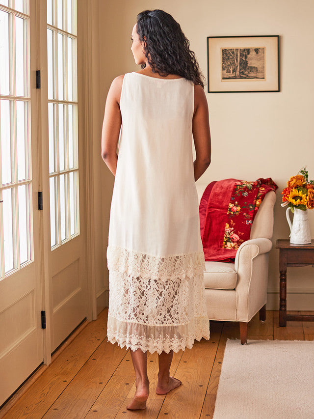 A timeless essential with a touch of vintage charm. The Camille Lace Slip is one of April Cornell’s best-sellers — a beautifully detailed, full-length slip designed for effortless layering and feminine elegance.