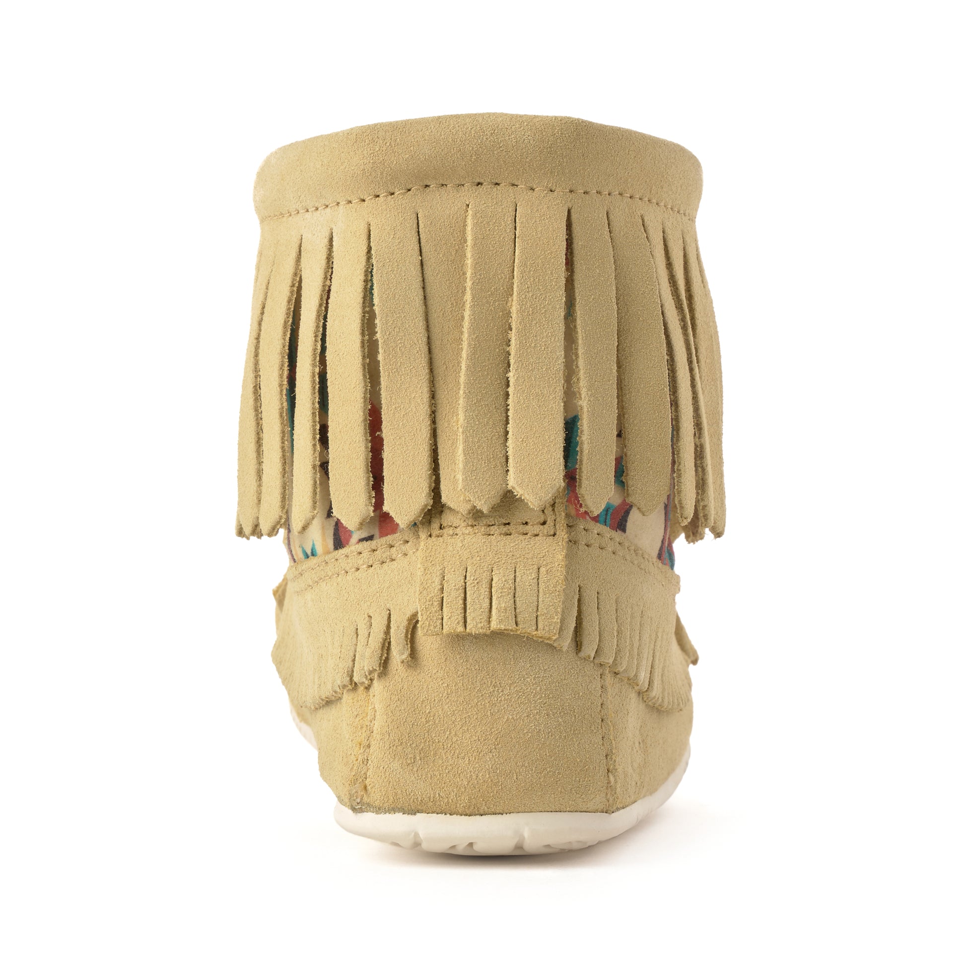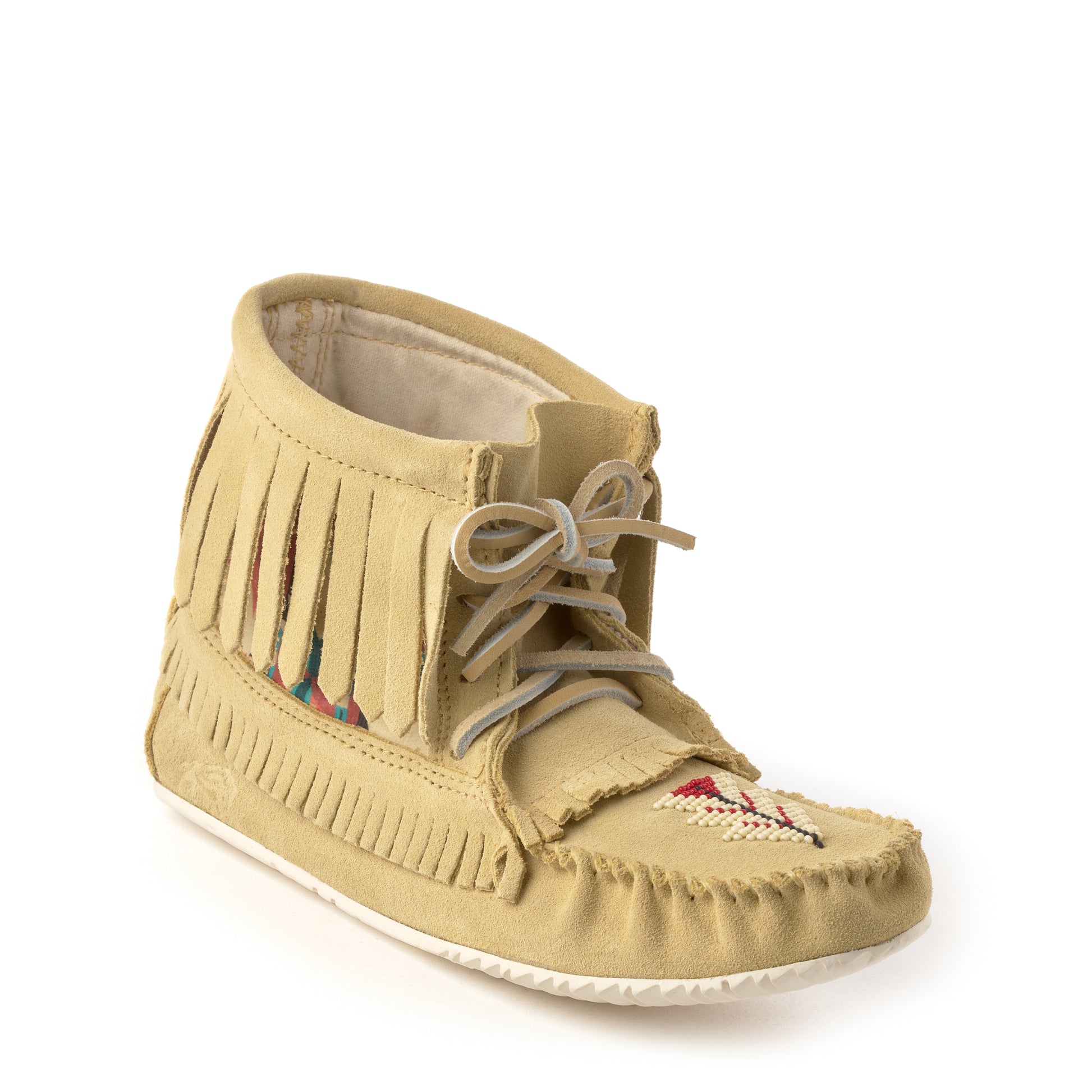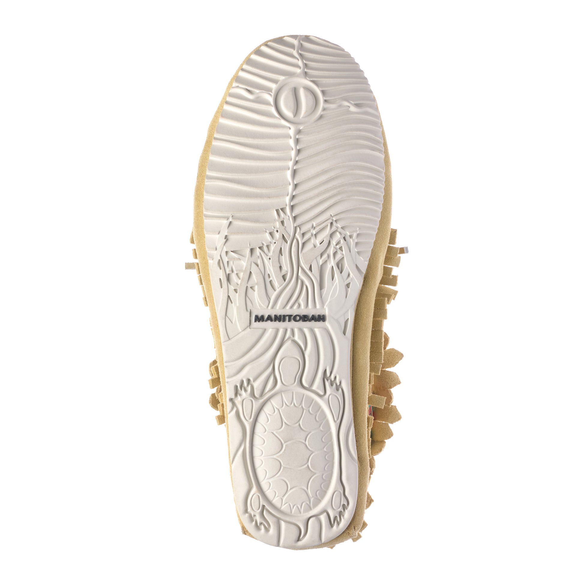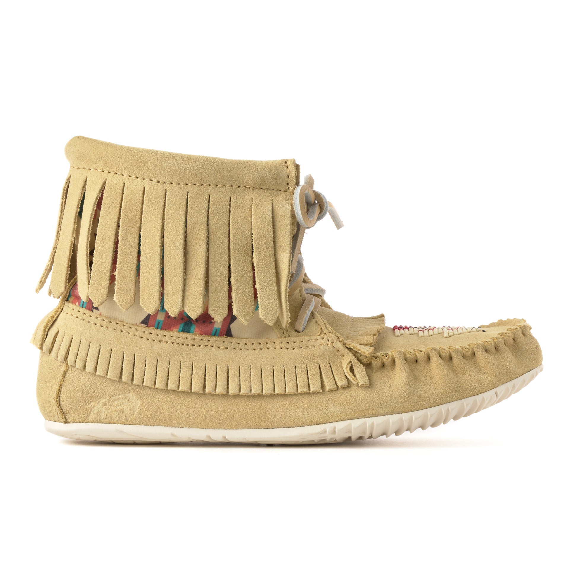 Elevate your fashion game with the Harvester Canyon, the newest addition to our esteemed Harvester collection. Crafted with a waxed canvas upper, this contemporary twist breathes fresh life into the beloved classic silhouette. Adorned with beadwork by esteemed Nimiipuu artist Mikailah Thompson and boasting a sole designed by Cree artist Heather Endall, this moccasin is a work of art, seamlessly fusing modern sophistication with the enduring charm of its predecessor.