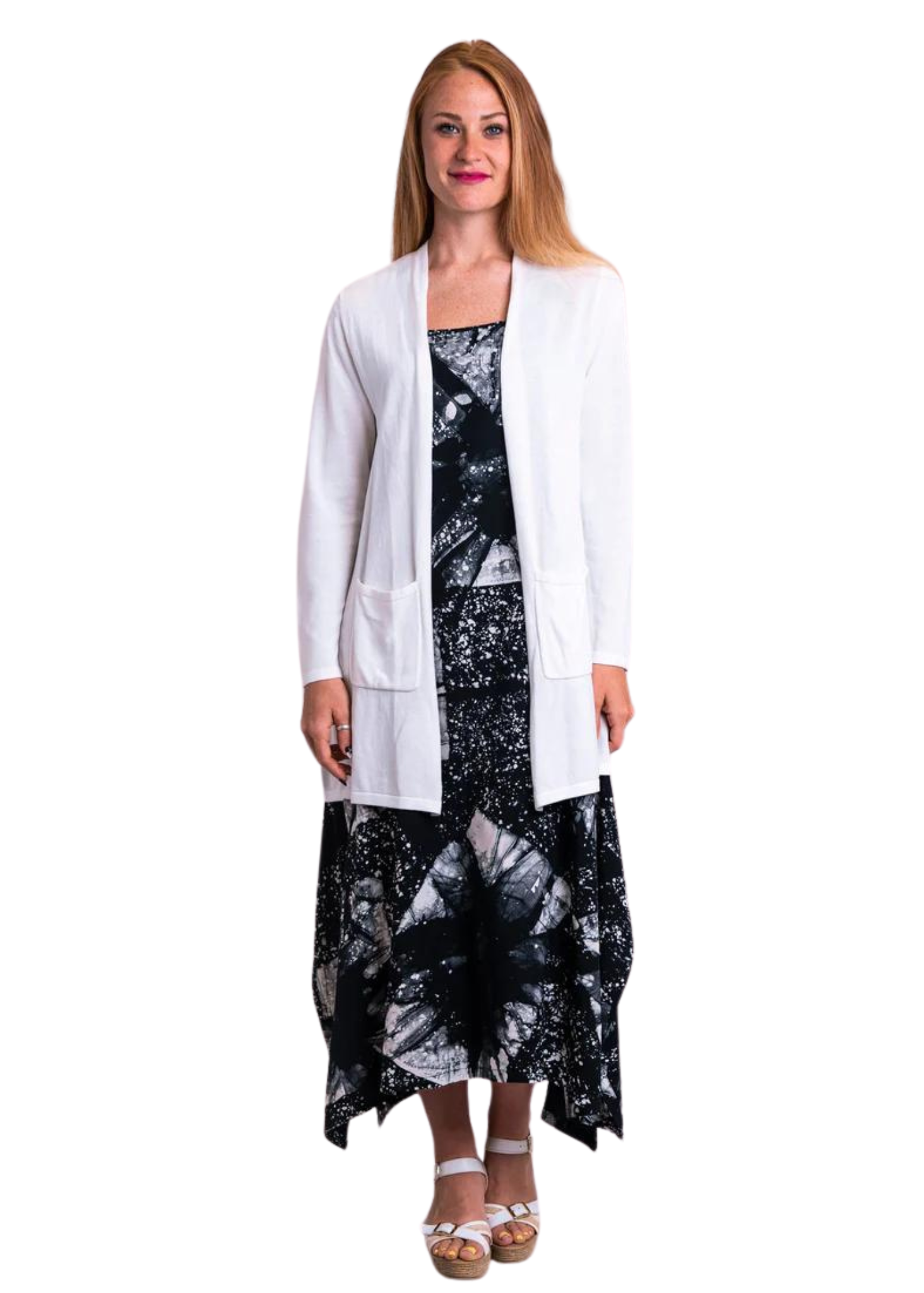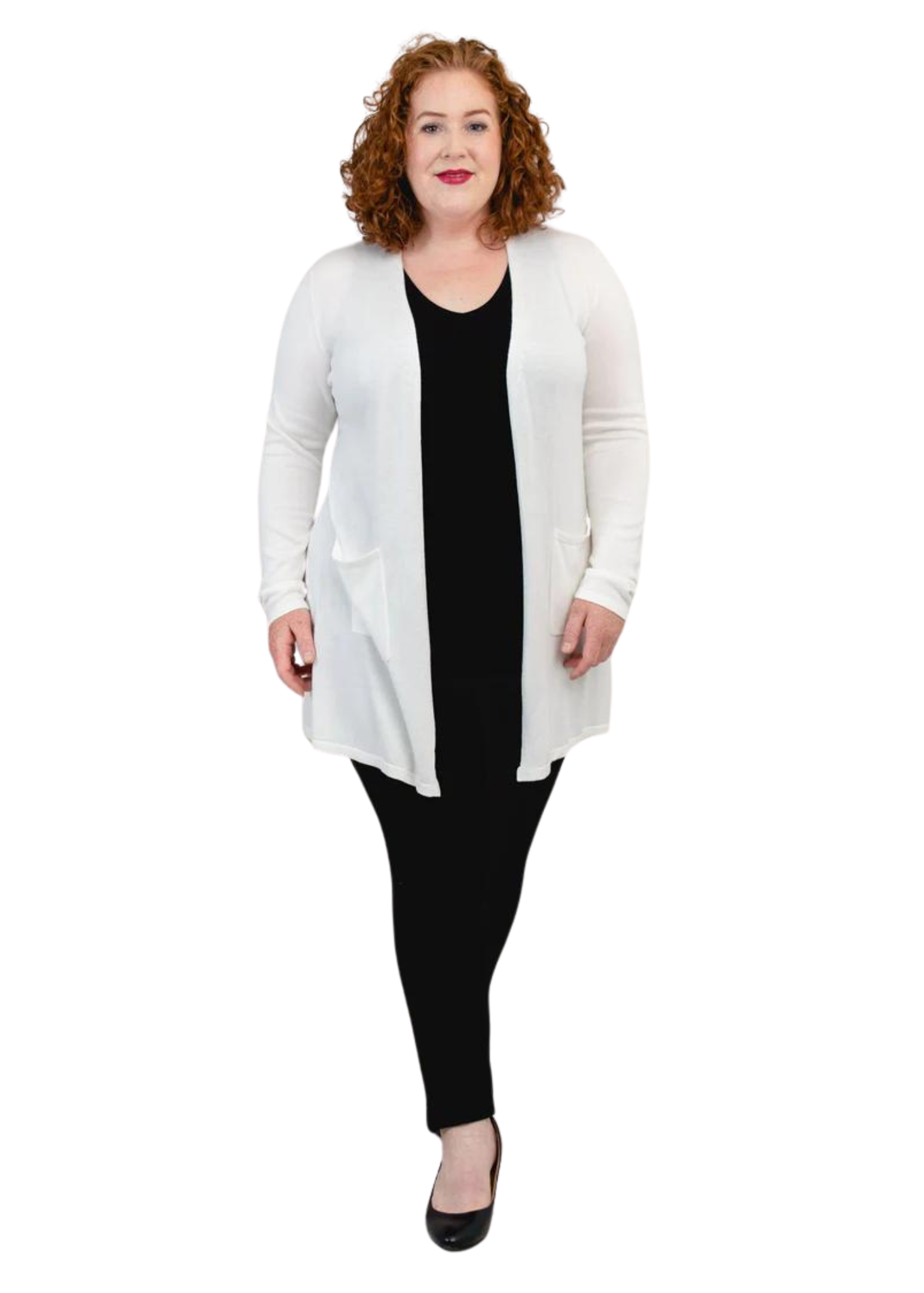 Introducing our cherished Justine Sweater, a quintessential addition to your wardrobe! This open-style cardigan boasts functional pockets and elongating, slim lines. The Justine is thoughtfully crafted to offer ample coverage, gracefully falling below the hips. Perfect for layering over dresses, blouses, and sleeveless tops for effortless style.
