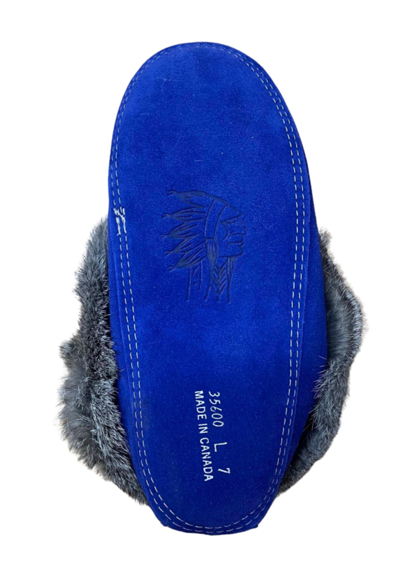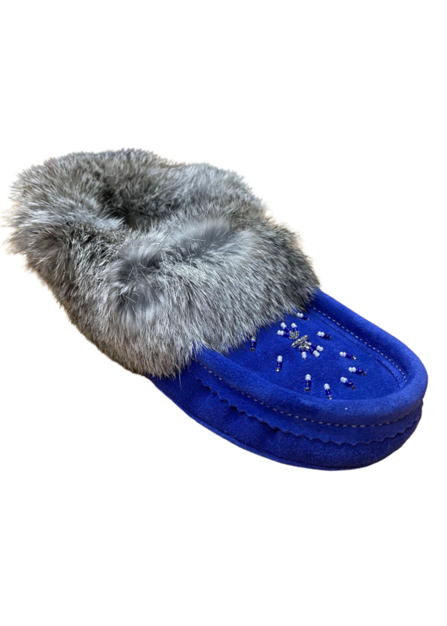 Crafted with genuine Canadian suede and fine rabbit fur, these moccasins bring together traditional craftsmanship and luxurious comfort. Each pair features a hand-sewn glass bead design, making every set unique.