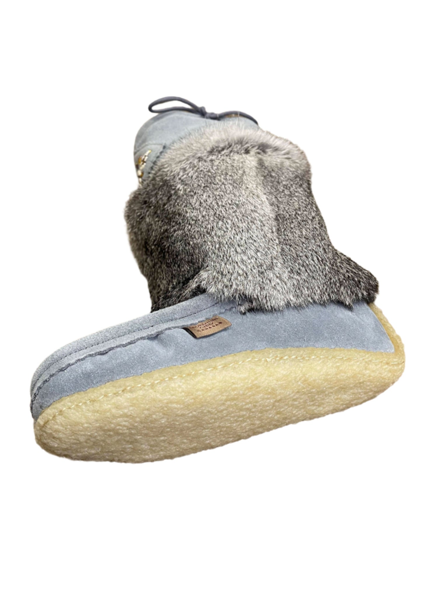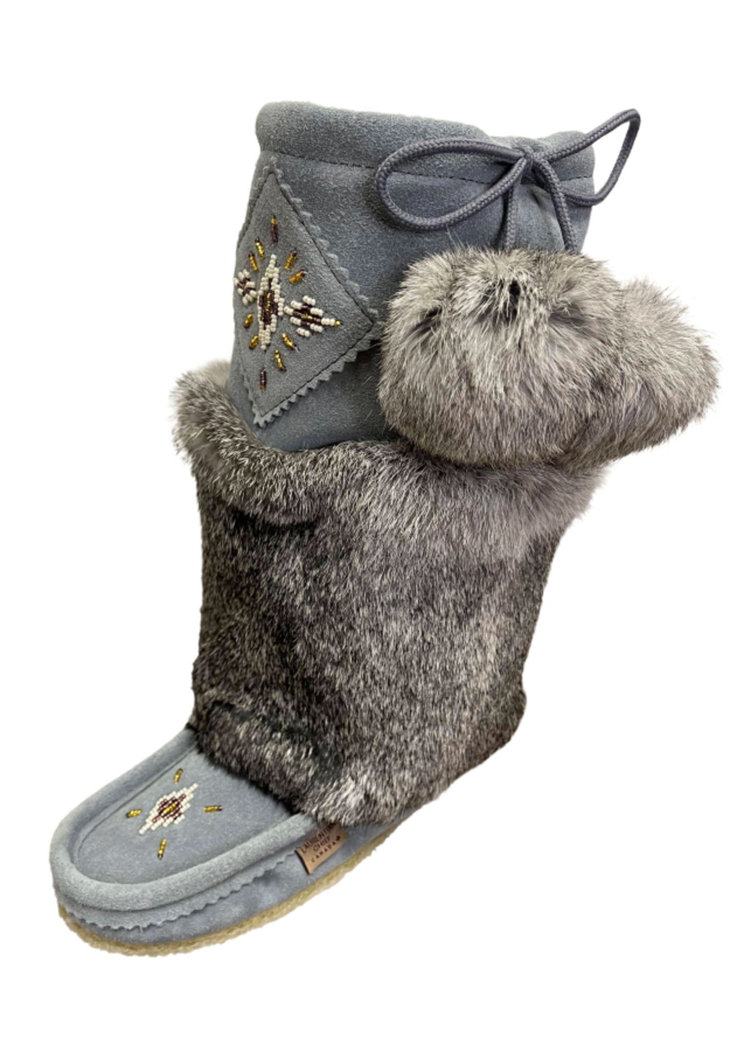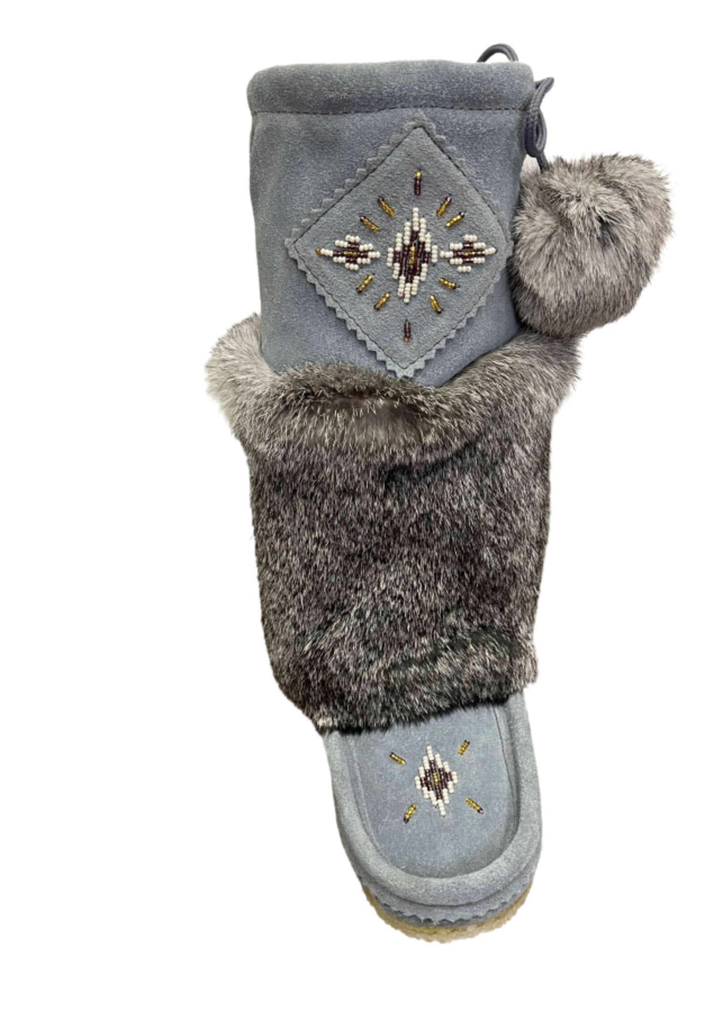 These women's mid height mukluk boots are the best combination of fashion and comfort. They have a warm and cozy Sheepskin lining keeping your feet toasty while you are outdoors. The exterior of the boot has fuzzy rabbit fur. These women's traditional style mukluks are handmade from genuine suede leather. They have a matching hand-beaded design on the vamp giving them a unique look. They have a durable outdoor crepe/rubber sole. These women's traditional style mukluks are the best 'everyday' winter boot. We carry women’s sizes 4-11 when ordering you should go down 1 shoe size. They do not come in half sizes, if you wear a half size order down to the nearest full size. (9 ½ or size 9).