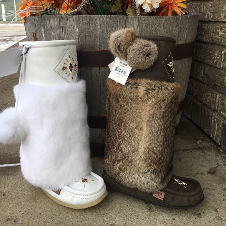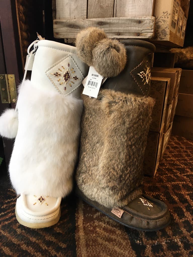 These women's mukluks are the best combination of fashion and comfort. They have a warm and cozy Sheepskin lining keeping your feet toasty while you are outdoors. The exterior of the boot has fuzzy rabbit fur. These women's traditional style mukluks are handmade from genuine suede. They have a matching hand-beaded design on the vamp giving them a unique look. They have a durable outdoor crepe/rubber sole. These women's traditional style mukluks are the best 'everyday' winter boots.