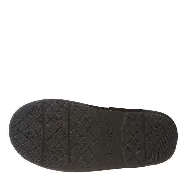 The BEARPAW® Loki offers a luxurious way to kickstart your day. These comfortable women's slippers feature soft suede uppers adorned with a sheepskin collar that's not only easy to care for but also provides unmatched comfort. With sheepskin lining that regulates body temperature to keep your feet warm and a sheepskin footbed for added softness and reduced foot fatigue, these slippers are designed for your ultimate comfort. The durable outsole also makes them a versatile choice for both indoor and outdoor use. It's important to mention that the quilted colors Black, Light Grey, and Blue Fog come with velvet uppers, while Gunmetal, Pink Glitter, Gold, and Antique Bronze feature a glittery, sparkling finish.