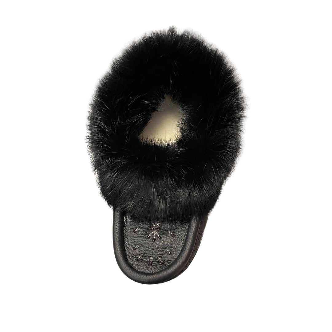 Step into warmth and luxury with our Canadian-made rabbit fur moccasins, expertly crafted from premium Nappa leather and fine rabbit fur. These moccasins are designed to deliver superior comfort and style throughout the winter season.