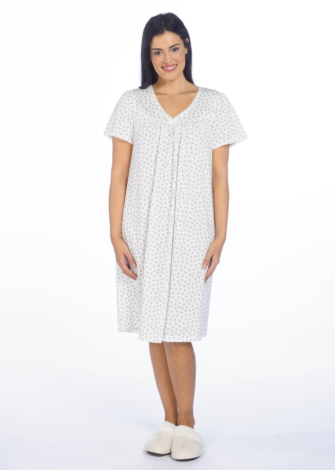Fabric Content: Crafted with care from a premium blend of 65% Polyester and 35% Cotton, this nightgown offers the ideal combination of softness, breathability, and durability.