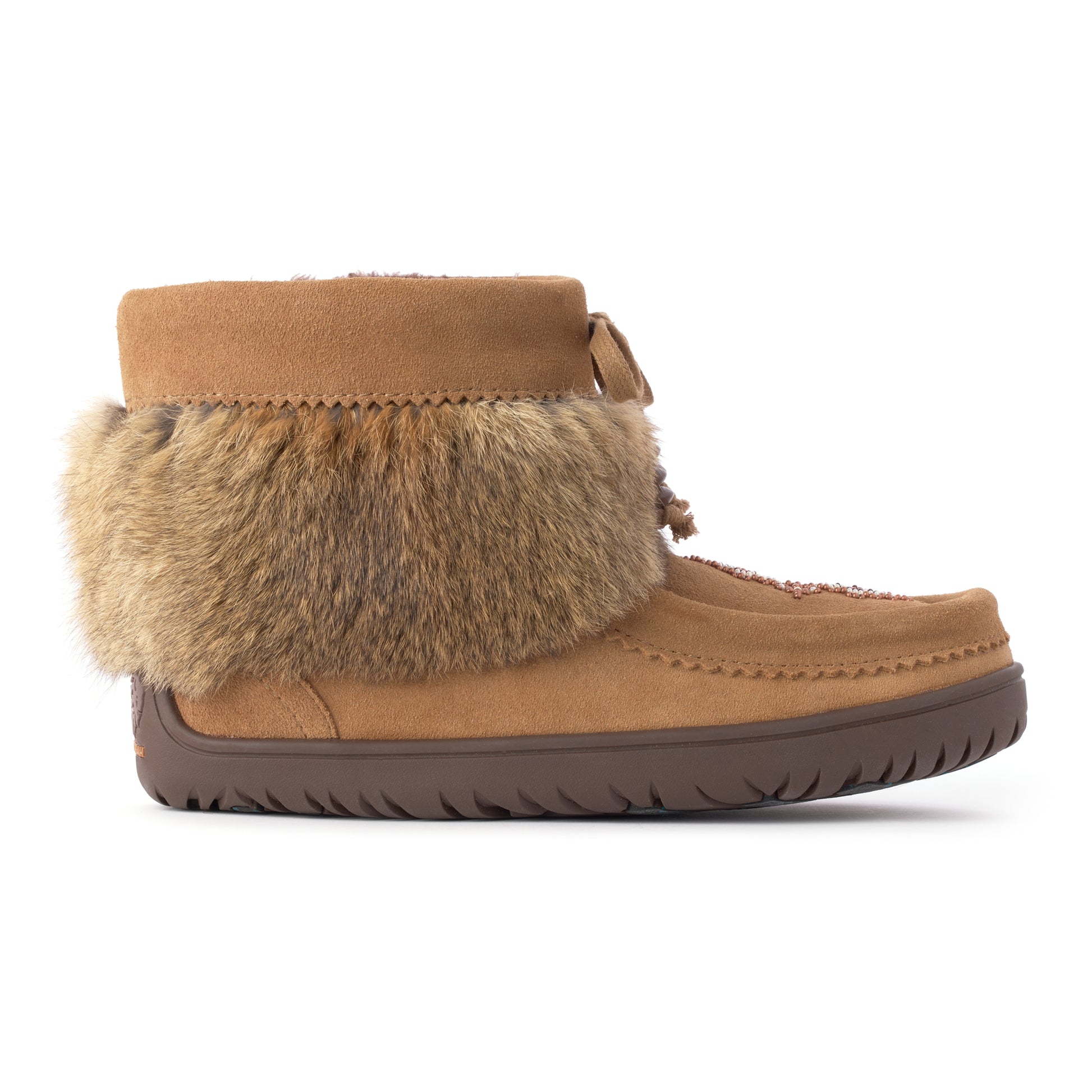 Step into winter with effortless style and warmth in the Manitobah Solstice Ankle Mukluk, part of the coveted Solstice collection. This stunning ankle-height mukluk, crafted from high-quality cowhide suede and finished with a luxurious rabbit fur trim, is inspired by the iconic Keewatin silhouette. It features a cozy sheepskin-lined footbed to keep feet warm and comfortable, with a temperature rating of -32°C in active use, making it a go-to for winter outings. With a 6” shaft height and a 14” circumference, this mukluk pairs beautifully with any outfit while delivering top-tier warmth and comfort.