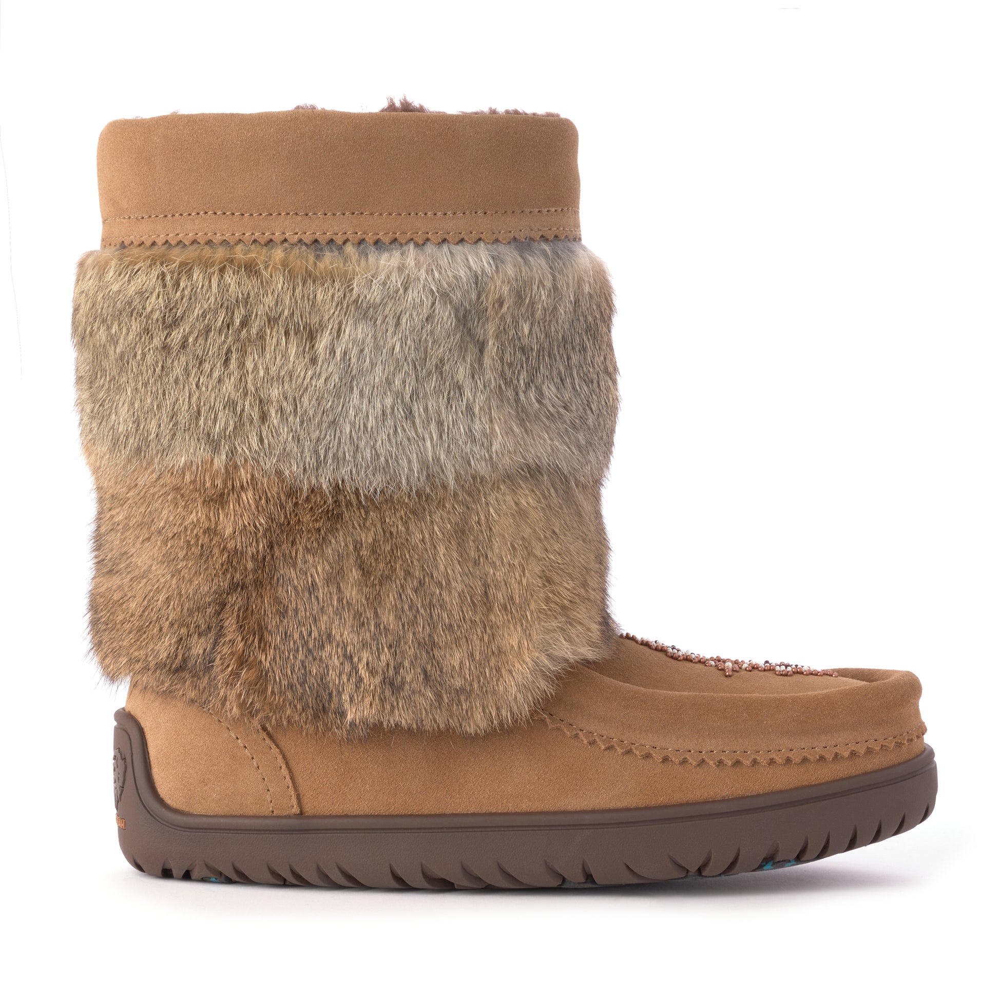 Embrace winter with elegance and warmth in the Manitobah Solstice Half Mukluk, part of the exquisite Solstice collection. Crafted from premium cowhide suede and adorned with luxuriously soft rabbit fur, these mukluks deliver unmatched comfort and grace with every step. Inspired by Manitobah’s iconic Half Mukluk design, this pair is lined with cozy sheepskin and features a unique rubber Glacier Grip Tipi sole, designed by Cree artist Heather Endall, that enhances grip and durability.