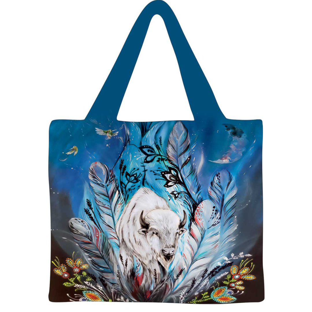 The Spirit Buffalo reusable shopping bag features artwork by Karen Erickson, who has Métis and Cree heritage. She earns a royalty for every bag sold.