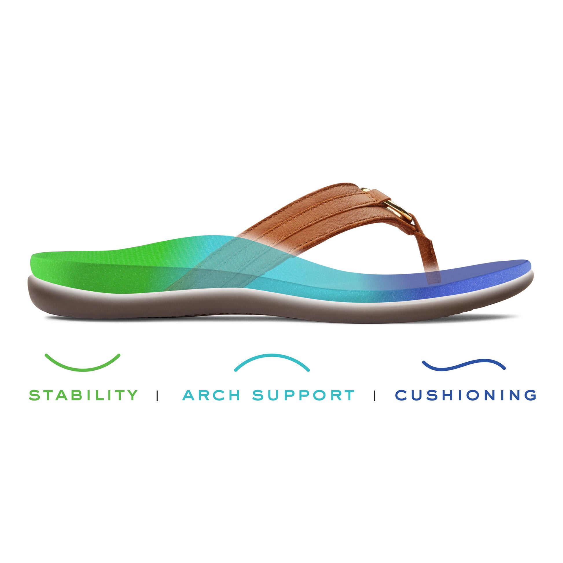 - Vionic Technology is biomechanically designed to hug your arches and support your feet in comfort. Vionic sandals' built-in orthotic is shown to be effective in helping to treat heel pain (plantar fasciitis).