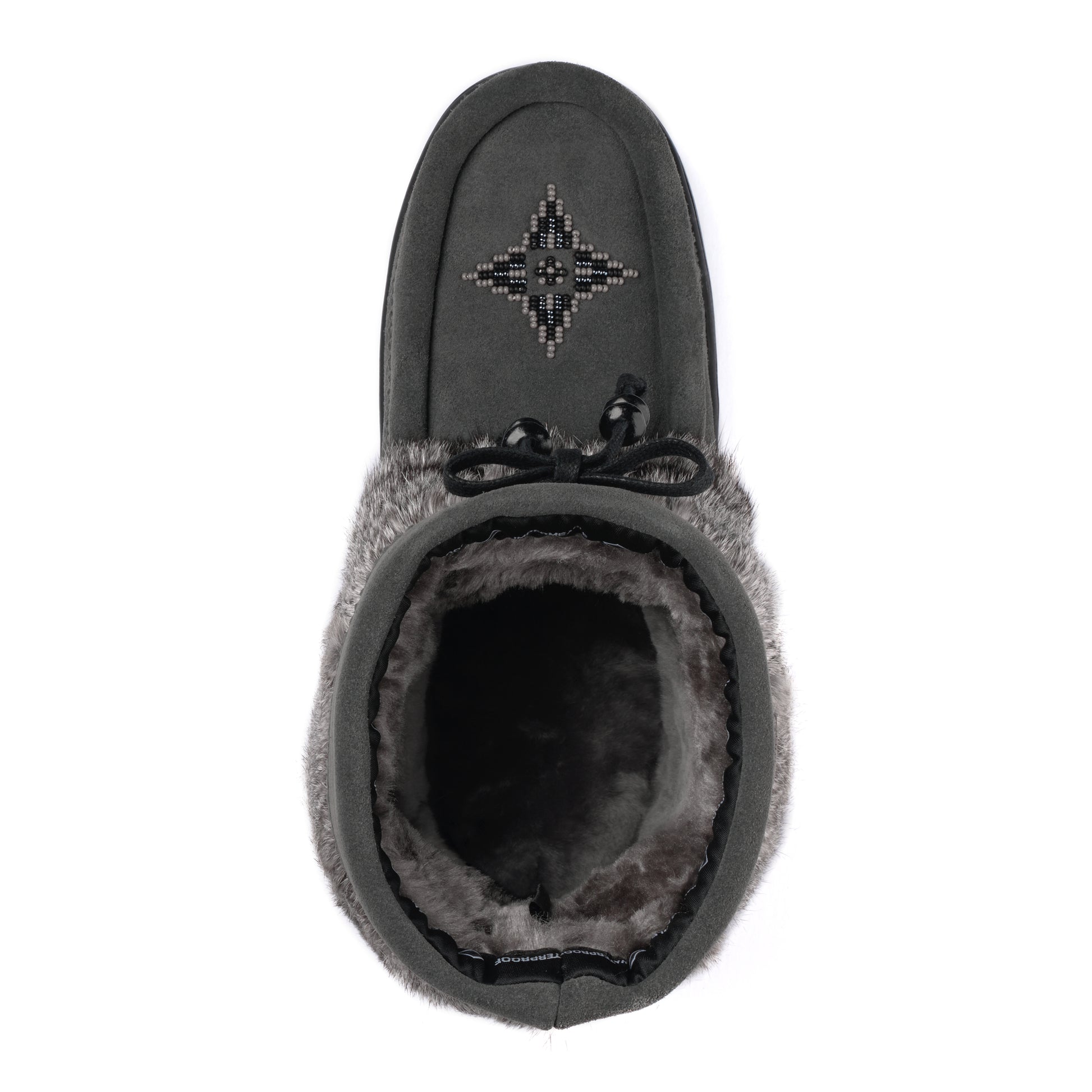 Some of our mukluks and natural-soled moccasins follow a traditional Indigenous footwear method, meaning there is no “left” or “right” foot. They may feel slightly off at first, but the natural materials mold to your feet over time for a truly custom fit.