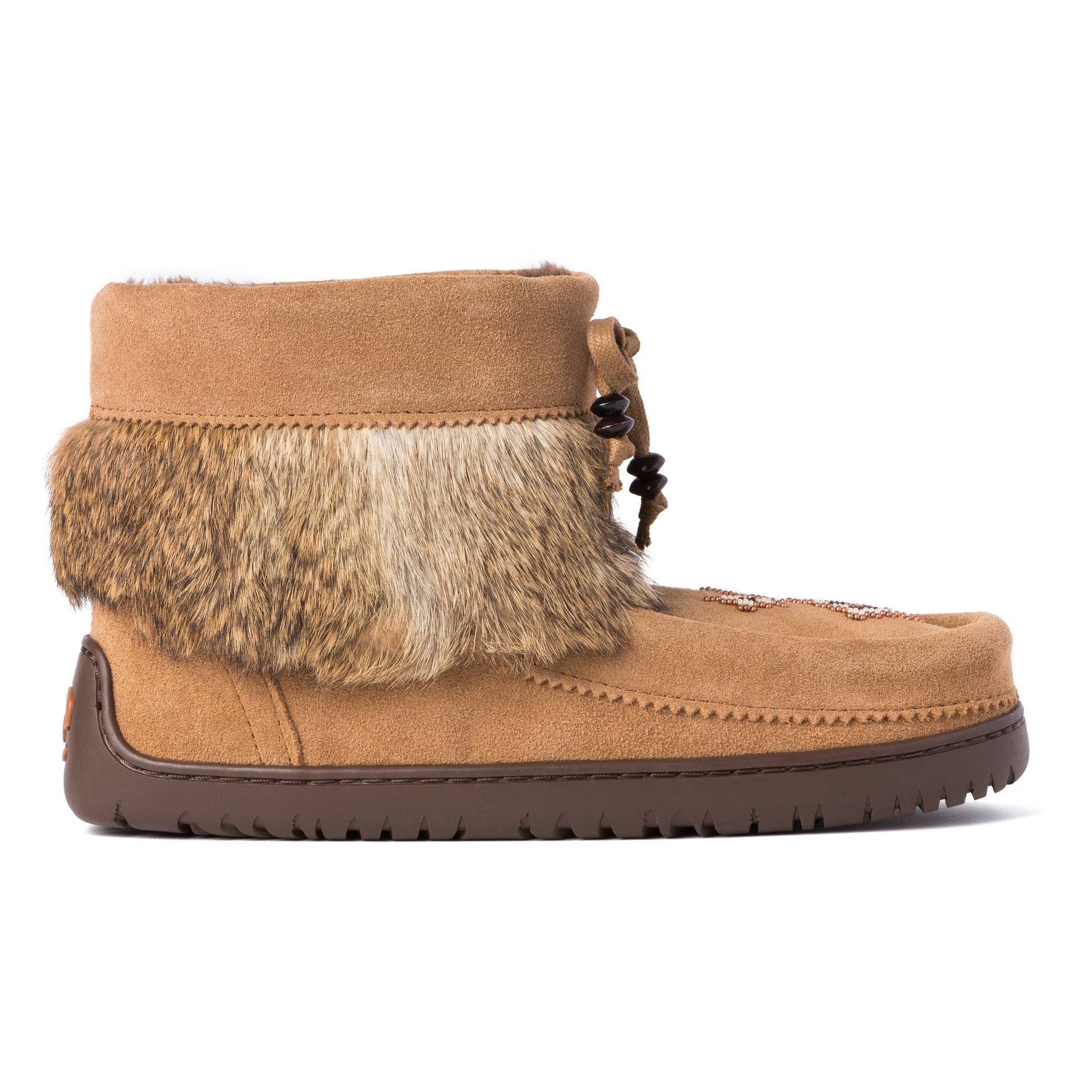 Some of our mukluks and natural-soled moccasins follow a traditional Indigenous footwear method, meaning there is no “left” or “right” foot. They may feel slightly off at first, but the natural materials mold to your feet over time for a truly custom fit.