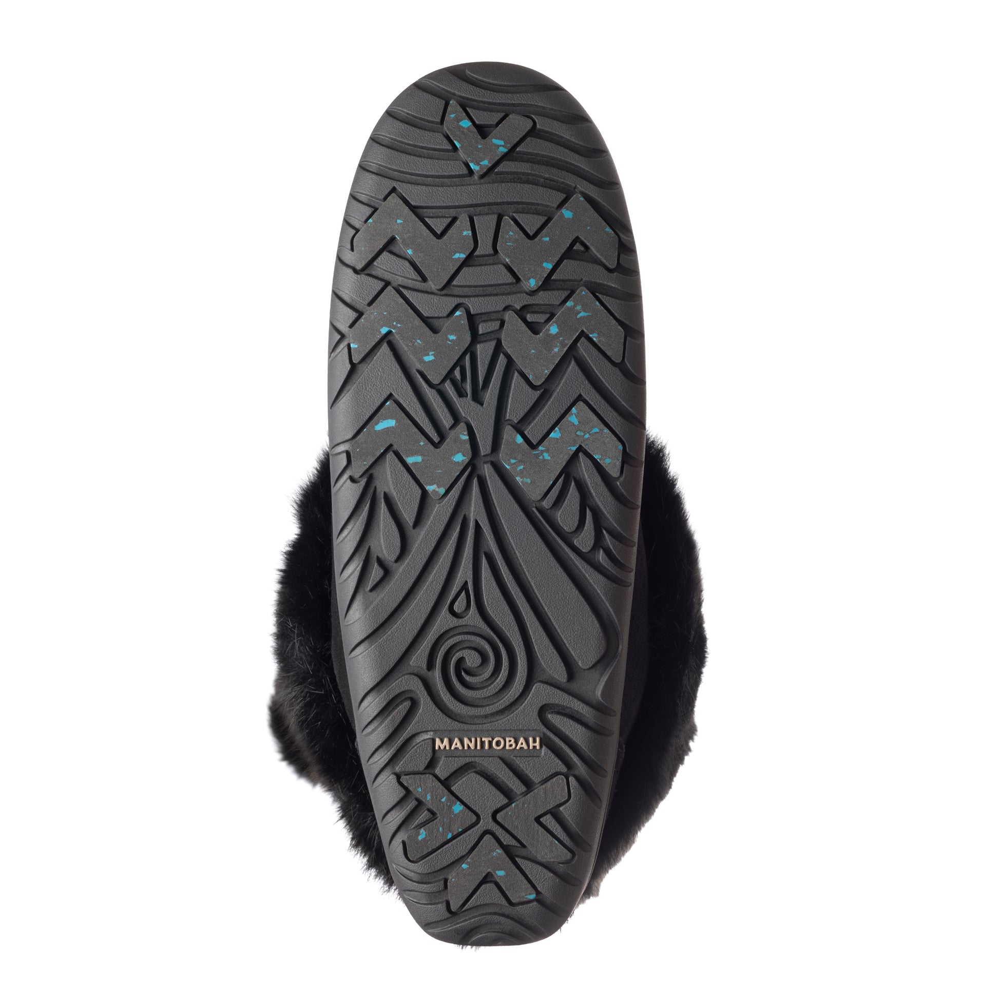 Designed for real winter living, the Métis Mukluk features Manitobah’s Glacier Grip Tipi sole for superior traction, a plush sheepskin footbed, and a cozy fleece-lined shaft to keep your feet warm and comfortable in temperatures as low as -32°C (-25°F).