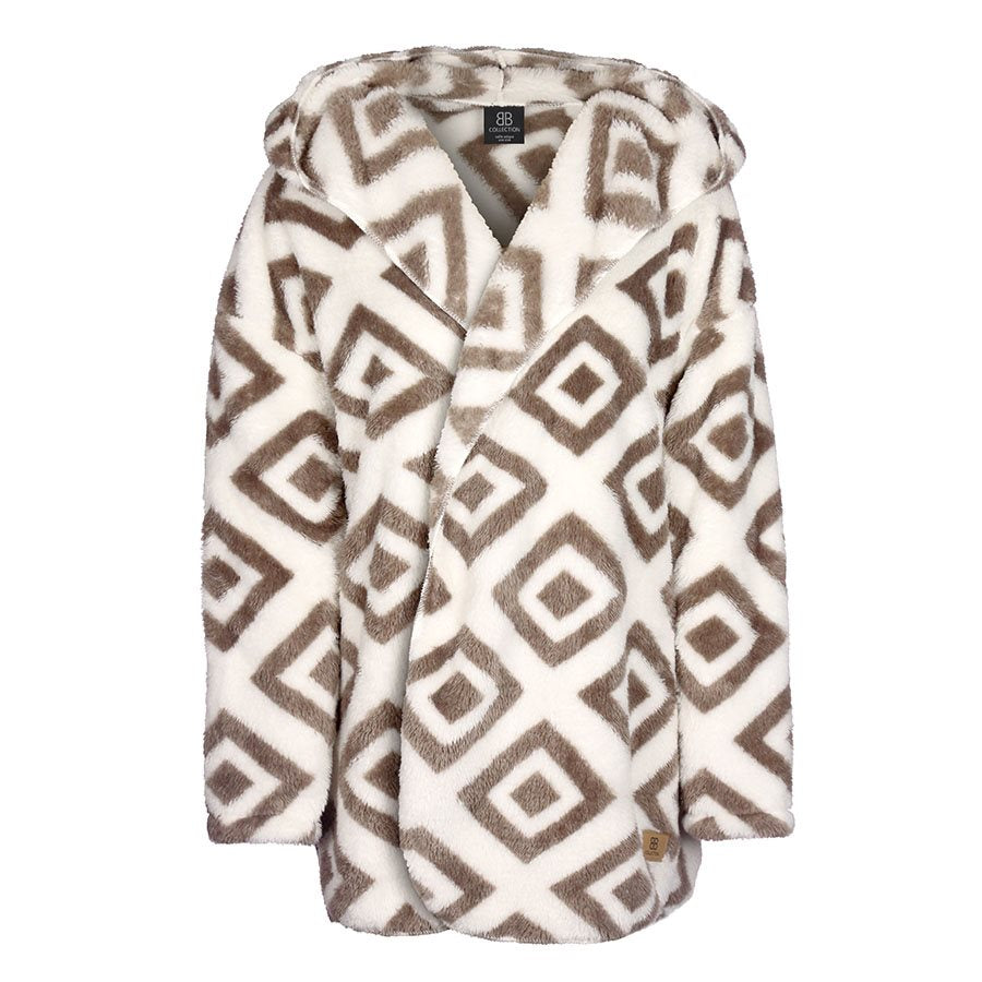 Elevate your cozy game with the BB Women Fluffy Jacket in Aztec. This chic and stylish jacket features a timeless beige combo with intricate Aztec-inspired patterns, adding a touch of bohemian charm to your wardrobe.