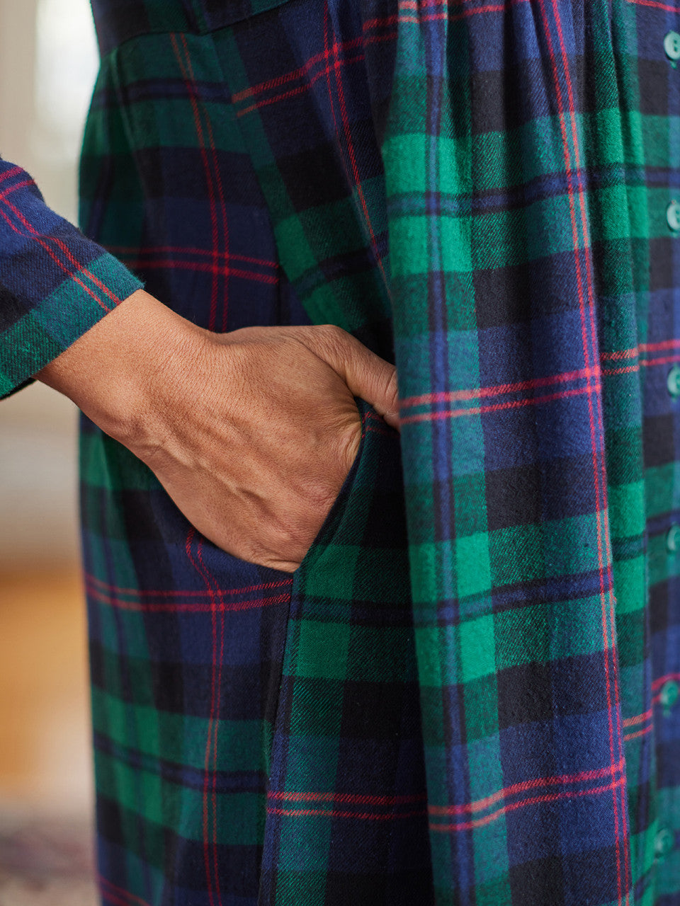 Featuring side seam pockets for added convenience and classic chalk buttons down the front, this long-sleeve nighty is perfect for those chilly nights. Pair it with the matching Yuletide Dressing Gown for a complete, cozy look.