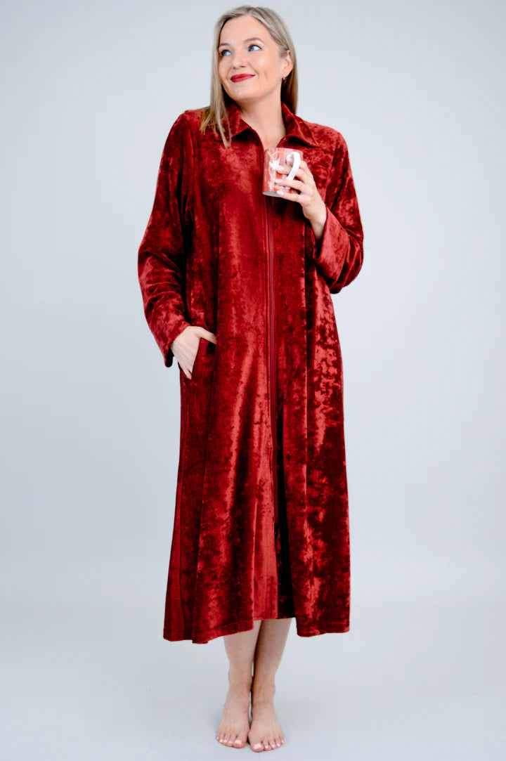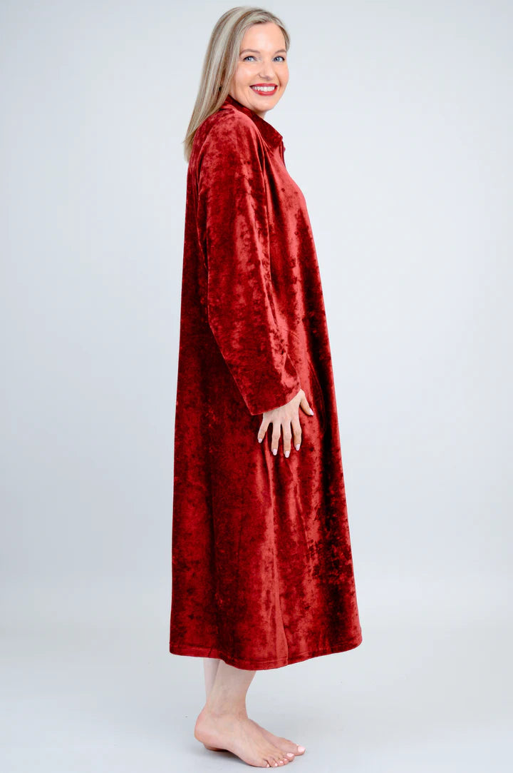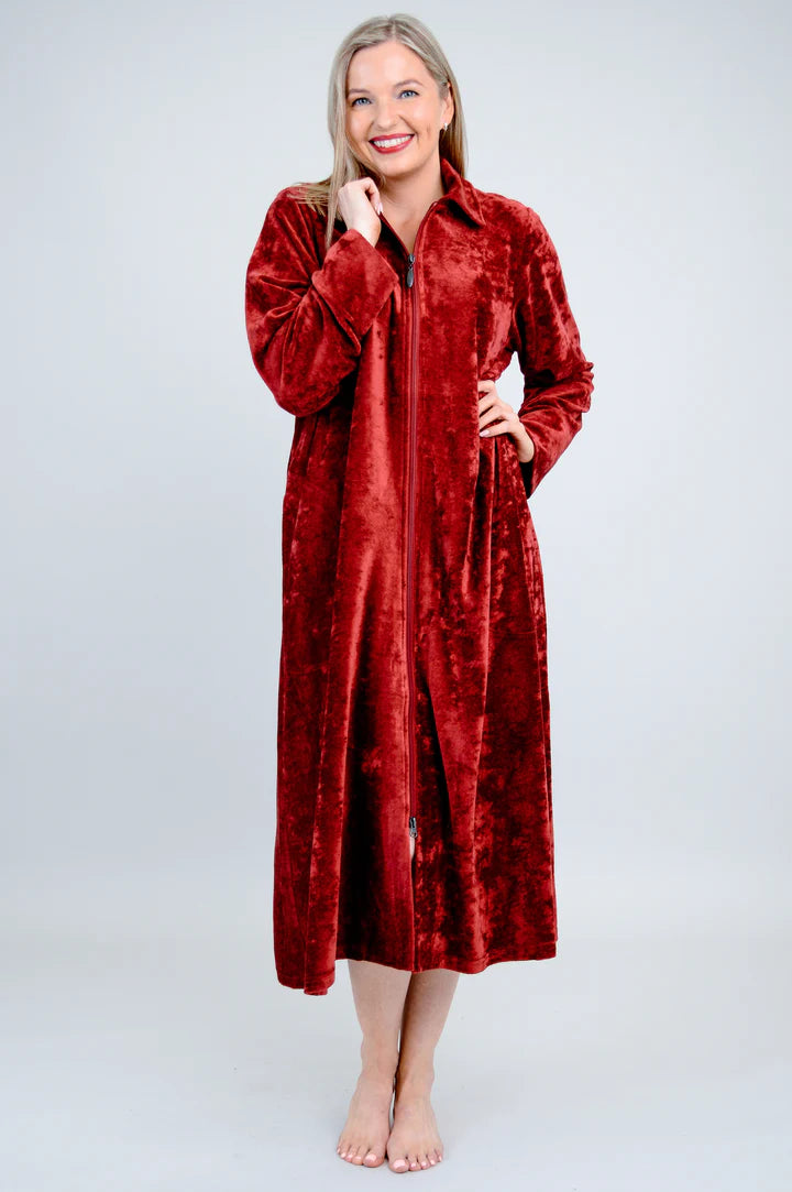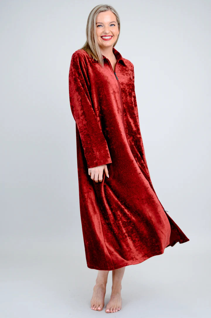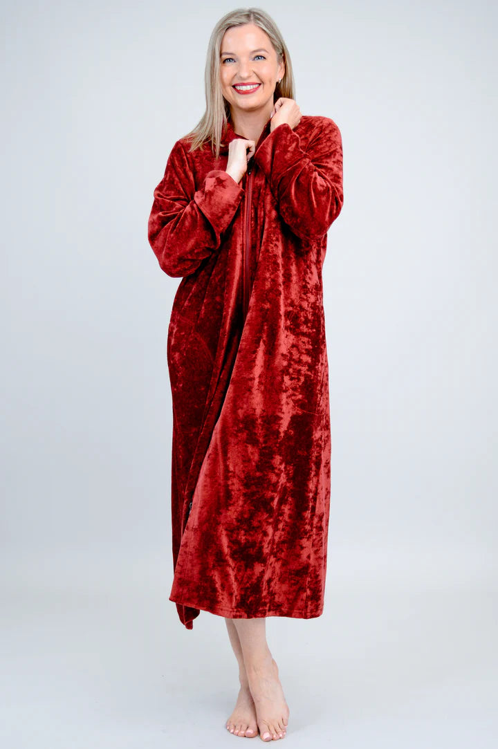 This Zippered Robe-Bamboo is the perfect combination of comfort and security, with a small collar, long zipper closure, and inset pockets. Lounging, showering, or grabbing the mail - now you can do it all without worrying about your robe coming untied. Blue Sky fit (true to size) and an ultra-luxe bamboo-cotton-Lycra blend make this robe a must-have!